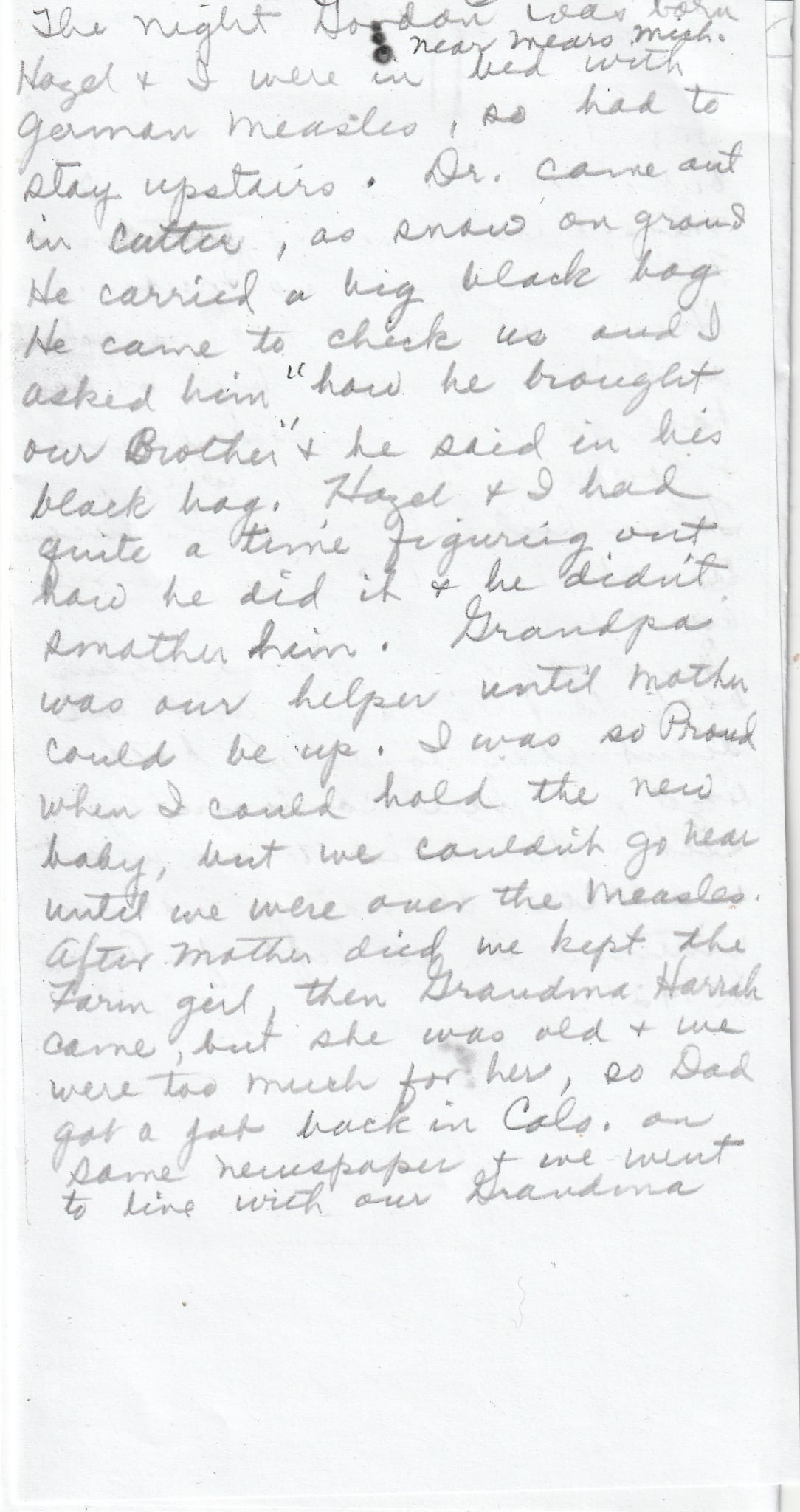 The letter where she tells Grampa Benjamin Mentzer spoke German and when she had an ear ache (infection)
